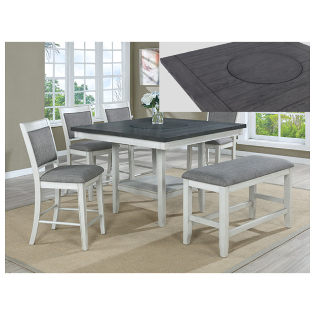 Fulton Chalk Wht Lazy Susan CTR Table, Bench + 4ch